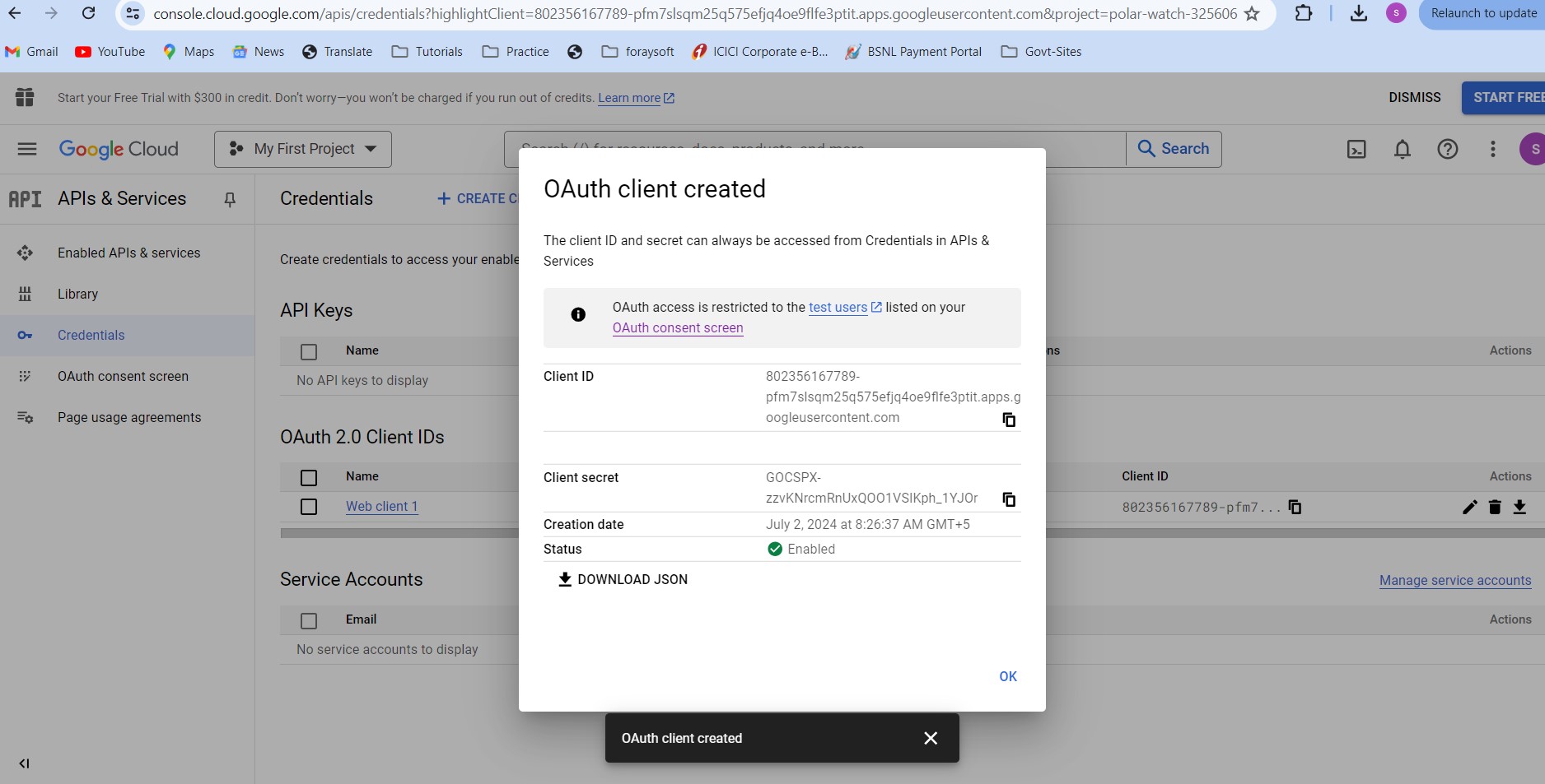 Create an app using Google API Console. Follow, Credentials -> Create Credentials -> Web Application.