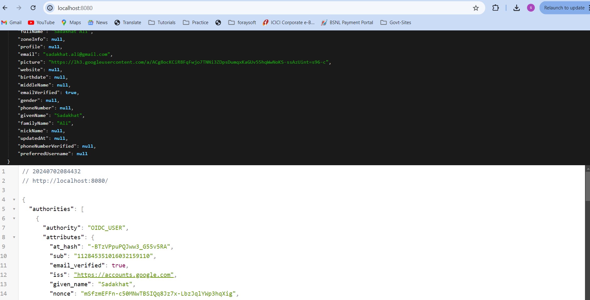 Create a simple controller like below to see if we are able to retrieve user info from the auth provider.