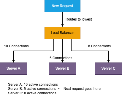 Routes requests to the server with the fewest active connections. This algorithm is dynamic, it considers