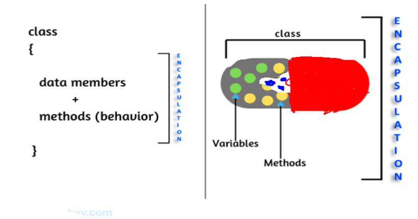 Data Encapsulation is a process of wrapping up the datamembers into a single unit. Which means binding of the datamembers and corresponding methods into a single unit.