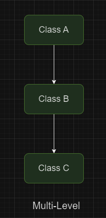 When there is a chain of inheritance, it is known as multilevel inheritance. As you can see in the example given below, BabyDog class inherits the Dog class which again inherits the Animal class, so there is a multilevel inheritance.