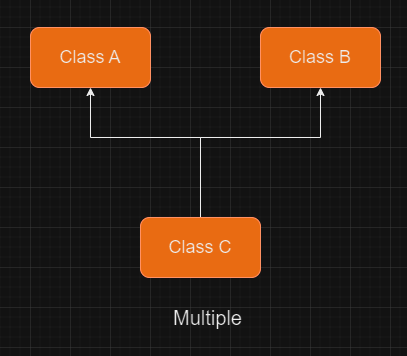 One class inherit multiple class called multiple inheritance. Example Class C inherits Class A and ClassB. Java doesn’t support multiple inheritance.