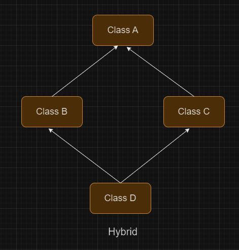 A hybrid inheritance is a combination of more than one types of inheritance. For example when class A and B extends class C & another class D extends class A then this is a hybrid inheritance, because it is a combination of single and hierarchical inheritance.