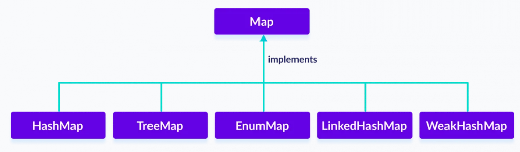 Map interface has 5 different types of class, In order to use functionalities of the Map interface, we can use these classes: