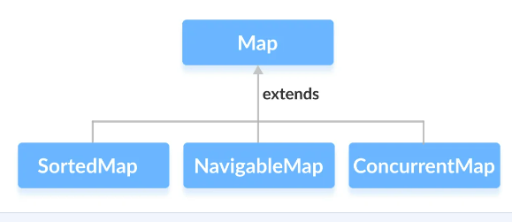 Map interface extended by three different subinterfaces: