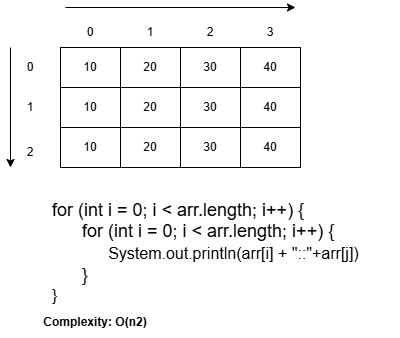 - 2D array can be iterated with the help of two for loops