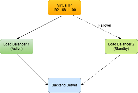 The two load balancers share a Virtual IP (VIP). When the active fails, the standby claims the VIP.