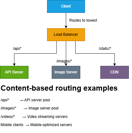 - Layer 4 vs Layer 7: Layer 4 is faster but less flexible. Layer 7 enables content-based routing and