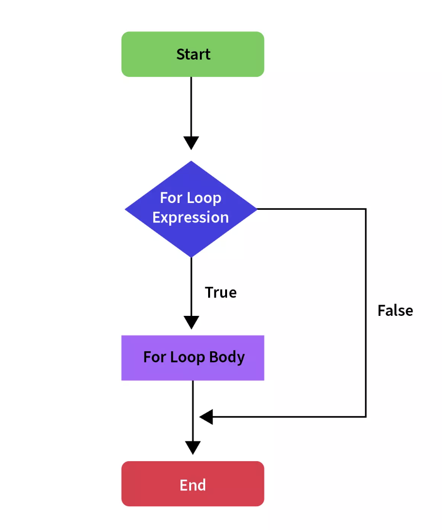 As you can see in the above flow diagram, we have a for loop expression. In this expression, the loop condition is checked, and if the condition is true, the for loop body is executed till the condition is false and we continue with the normal flow of execution.