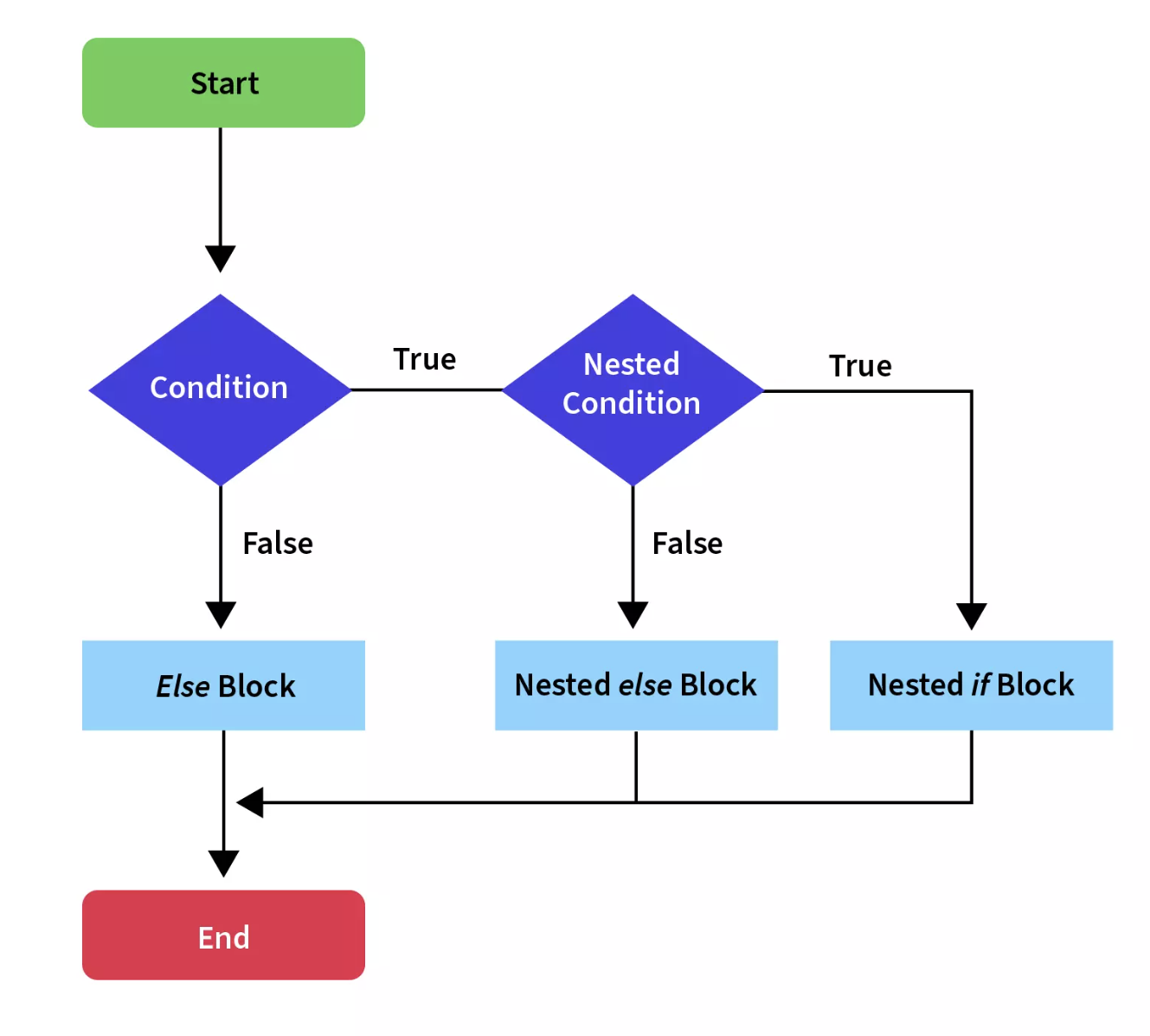 Let's see the execution flow of the nested-if-else statement in a flow diagram: