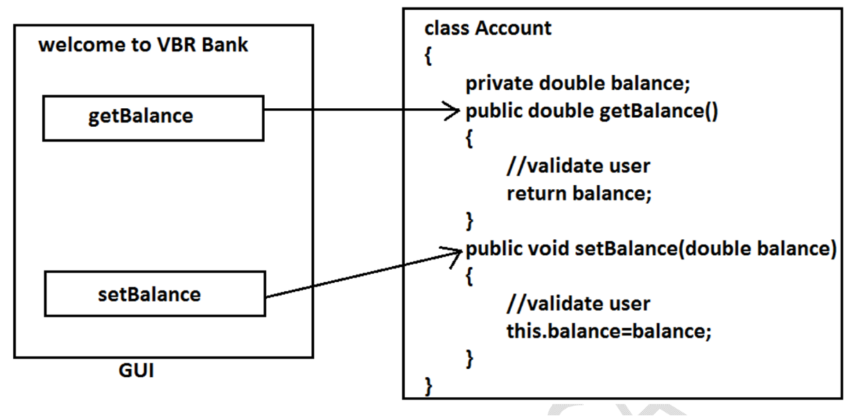 Data Hiding is hiding internal data from outside users. The internal data should not go directly that is outside person/classes is not able to access internal data directly. It is achieved by using an access specifier- a private modifier.