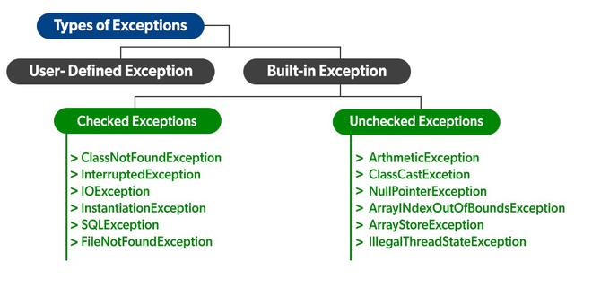 Java defines several types of exceptions that relate to its various class libraries. Java also allows users to define their own exceptions.