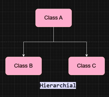 When two or more classes inherits a single class, it is known as hierarchical inheritance. In the example given below, Dog and Cat classes inherits the Animal class, so there is hierarchical inheritance.