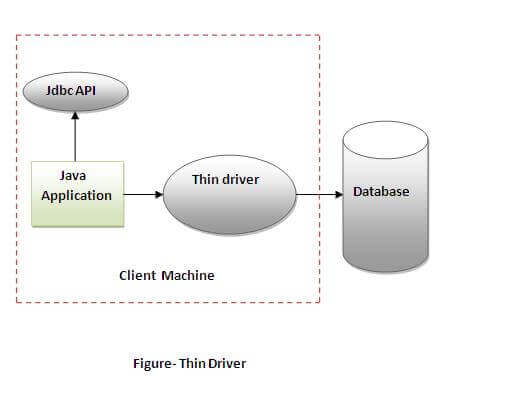 The thin driver converts JDBC calls directly into the vendor-specific database protocol. That is why it is known as thin driver. It is fully written in Java language.