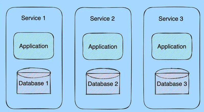 Usually, a monolith application has a single big data store that stores the data for all the needs of the application. In microservices, we divide the application into independent services. The database per service pattern suggests having independent, scalable and isolated databases for each microservice instead of having a common datastore. Each service should independently access its own DB, services cannot access each other’s DBs directly.