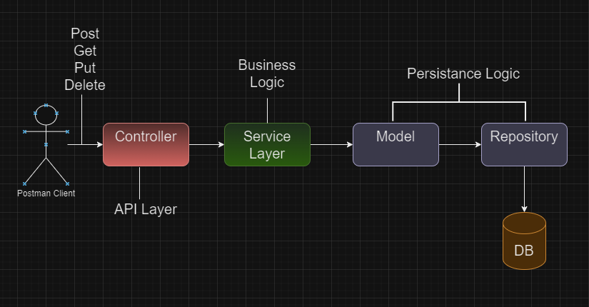 Service Layer: The service layer contains your business logic. It defines which functionalities you provide, how they are accessed, and what to pass and get in return. The service layer will intract with repository to fetch, save, update and delete the data based on the functionality. The service layer works as a middleware between controller and repository, also data transformation will also apply in service layer.